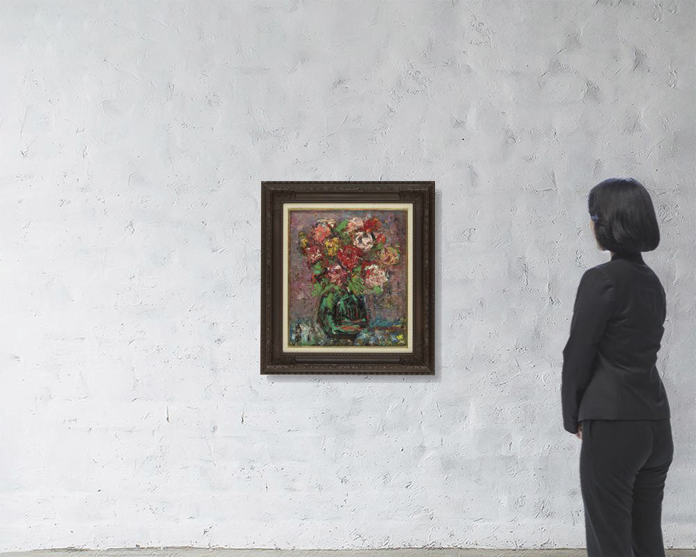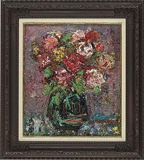 キャンバスに油彩 F10号 サイン有 キャンバス裏にもサイン、タイトル 画面隅1ヶ所にヒビ 額付