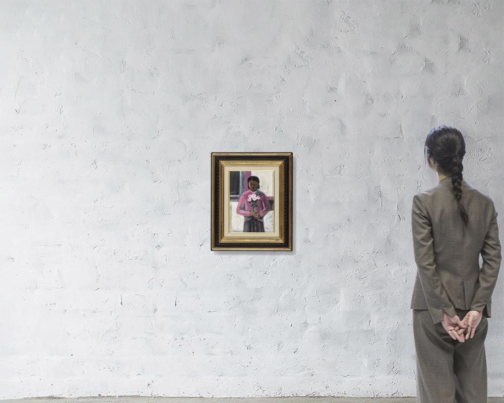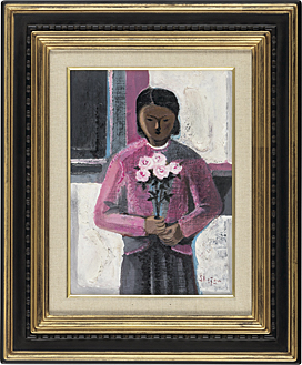 キャンバスに油彩 F4号 サイン有 キャンバス裏にもサイン、タイトル 共シール 額付*