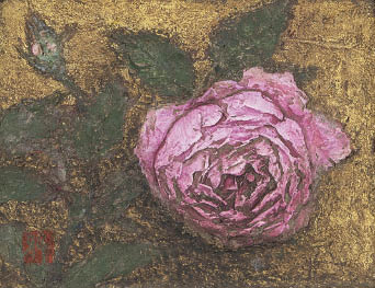 キャンバスにミックストメディア F0号 印有 共シール 額付