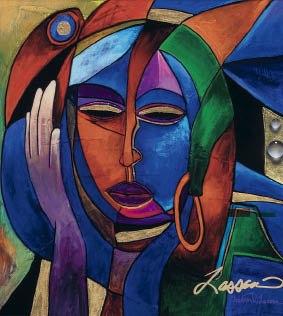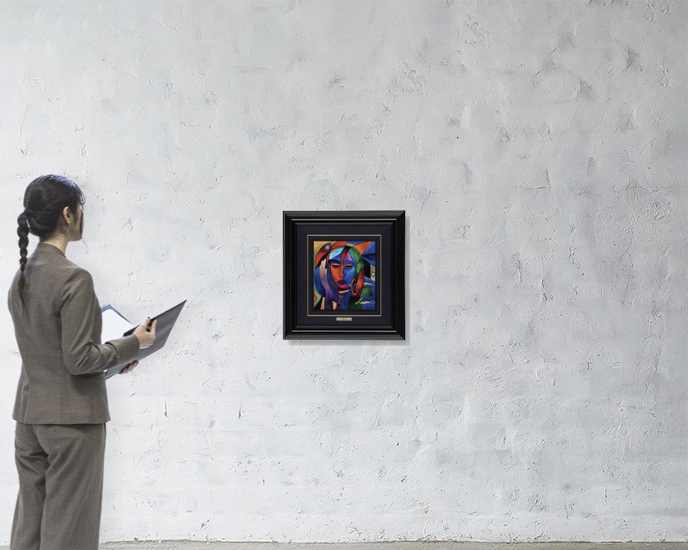 ミックストメディア版画に手彩 27×24.5(額窓)cm サイン有 額付*