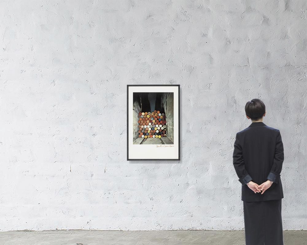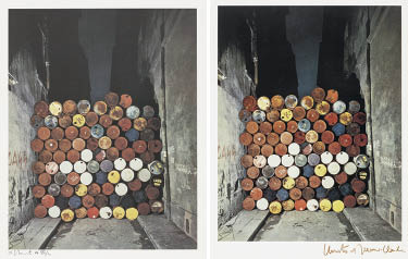S.151 1990年 オフセット 62.8×49cm サイン有 ed.APL 大体良好 もう1点は【Wall of Oil Barrels-The Iron Curtain, Rue Visconti, Paris, 1961-1962(ポスター)】(オフセット 88×60(額窓)cm サイン有 「ジャンヌ・クロード」のサイン 版面及びマージンに薄いヤケ、数ヶ所にシミ マージン数ヶ所にわずかな波打ち) 2点共額付*