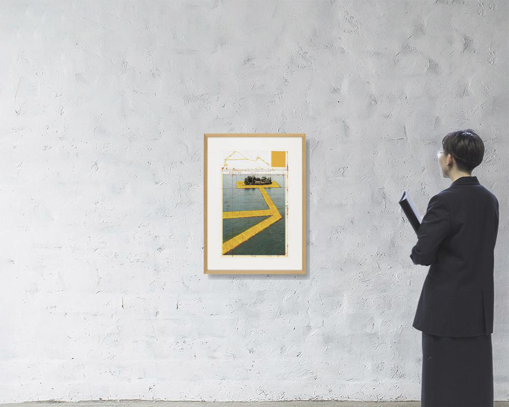 S.215 2017年 シルクスクリーン・コラージュ(写真・布・地図・マスキングテープ) 56×35.5cm(フルシート) サイン有 ed.75 大体良好 額付*