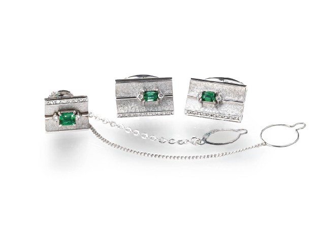 【Lot0141】 エメラルド ダイア タイタック & カフス