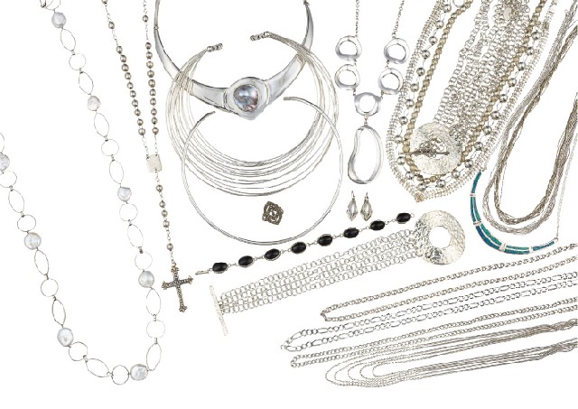 ロングネックレス2点(1点に刻印:925)、ネックレス15点(13点に刻印:925 1点に刻印:STERLING)、ピアス1点(刻印:925 イタミ有)、ブレスレット2点(共に刻印:925)、リング1点(刻印:925)