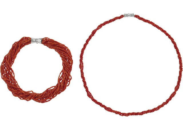 珊瑚 20連ネックレス [2点セット]