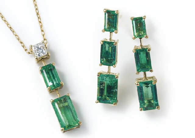 【Lot0499】 エメラルド ダイア ペンダント [2点セット]
