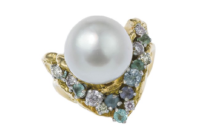 【Lot0812】 パール マルチカラーストーン リング