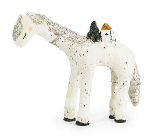 2022年 石塑粘土にアクリル・色鉛筆・布 H30×W37.5×9cm 底部にサイン、年記