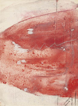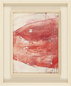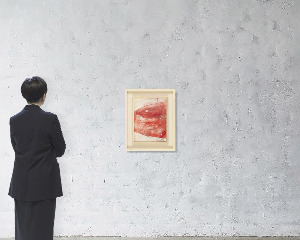 紙にミックストメディア 40.4×30(紙)cm サイン有 画面数ヶ所に付着物 額付