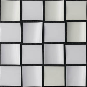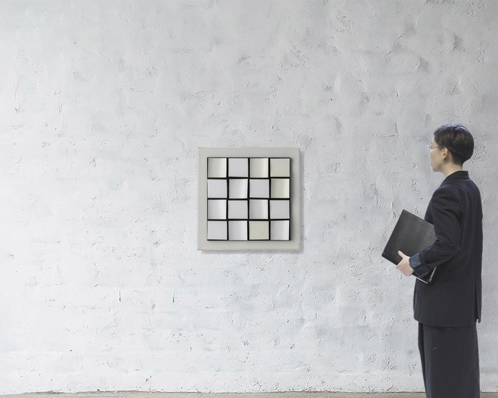 2004年 パネルにアクリル・コラージュ(塩化ビニール) 45×45cm パネル裏に貼付された紙にサイン、タイトル、年記 作品数ヶ所に薄いヤケ、わずかなコスレ 額付*