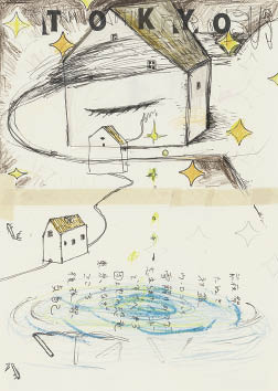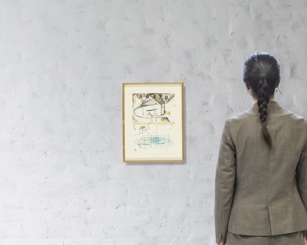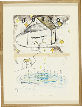 紙にインク・パステル・テープ 29.5×21(紙)cm 箱に「biscuit gallery」シール 額付*