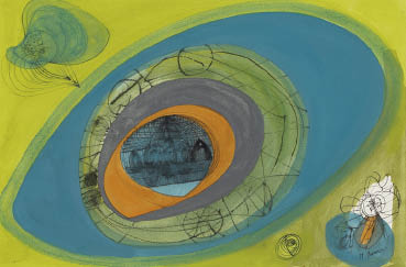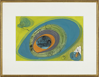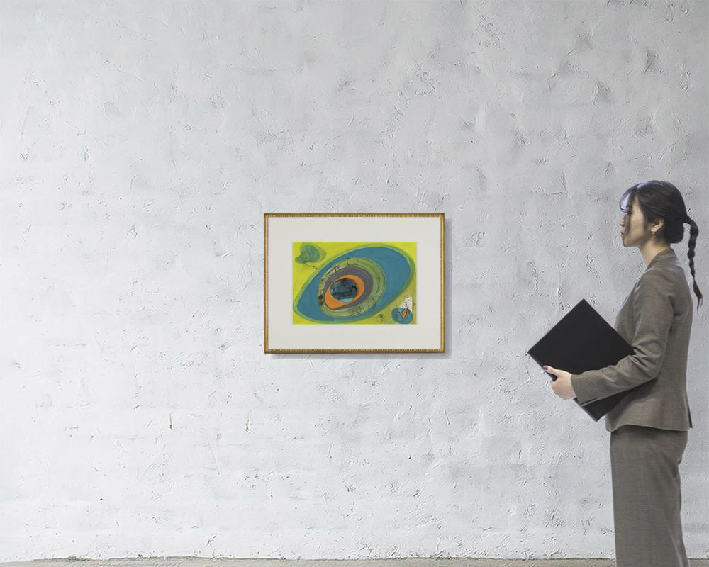 1971年 紙にインク・水彩 32×47.9cm サイン有 画面2ヶ所にわずかなシワ 額付
