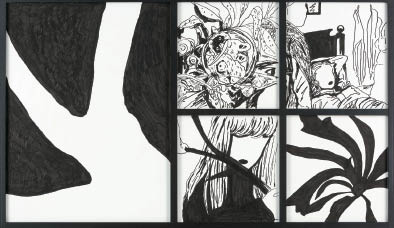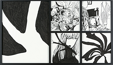 紙にペン 100×174(全体)cm 画面数ヶ所にわずかなシワ、わずかなヨゴレ 額付*