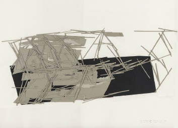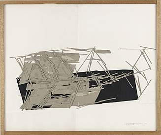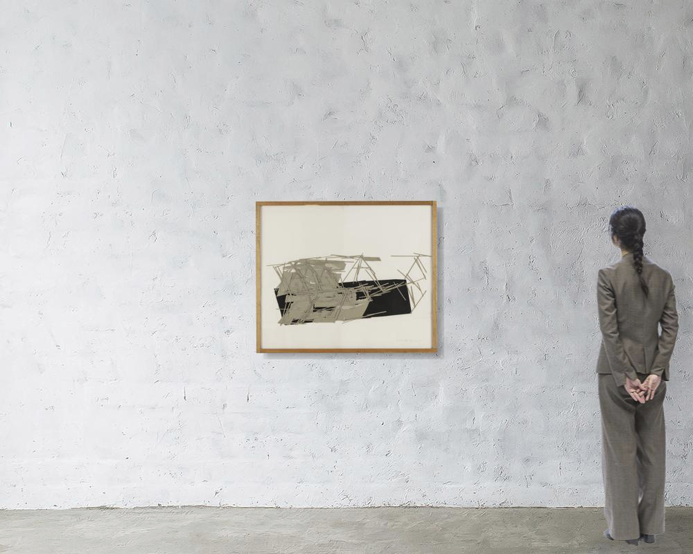 1987年 オブジェ(紙・厚紙・木・アクリル板) H103.8×W123.6×3.5(額装)cm サイン有 作品全体に薄いヤケ、数ヶ所にシミ、わずかなシワ、ヨゴレ、コスレ 額付*