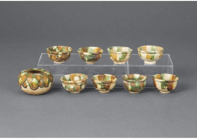 【Lot1012】 唐三彩小壷・唐三彩盃(8点) [9点セット]
