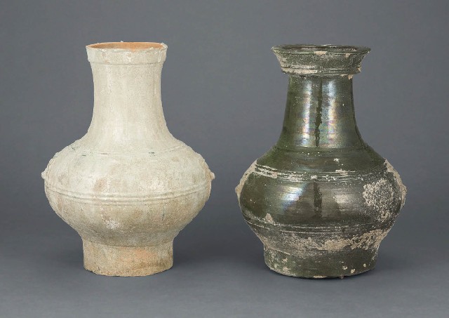 緑釉銀化壷・緑釉壷 [2点セット]
