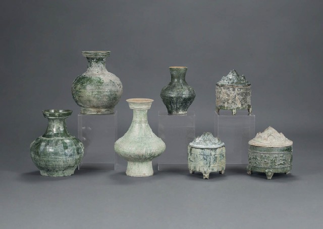 緑釉壷(4点)/H25.6~40.3×W19.7~27.9cm 緑釉温酒尊(3点)/H23~27×W19.2~23.9cm