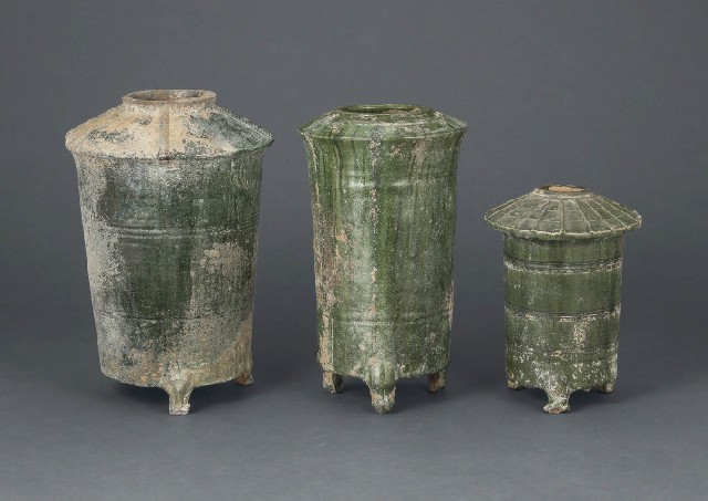 【Lot1032】 緑釉穀倉置物(3点)