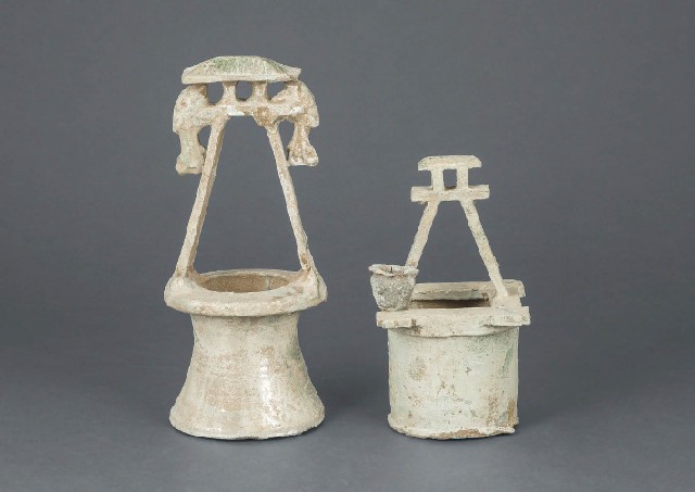 【Lot1033】 緑釉銀化井戸置物(2点)