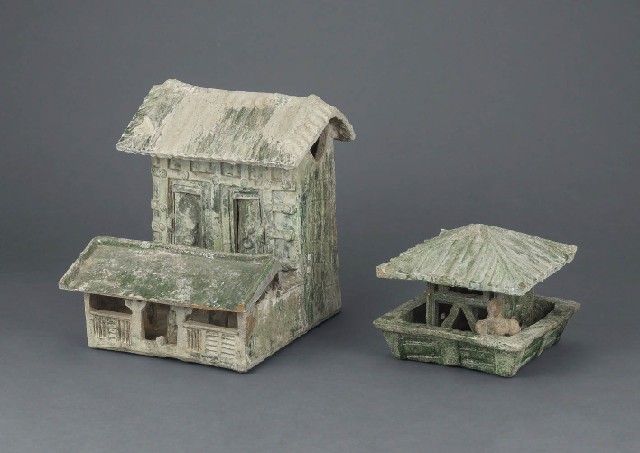 【Lot1034】 緑釉家置物・緑釉東屋置物 [2点セット]