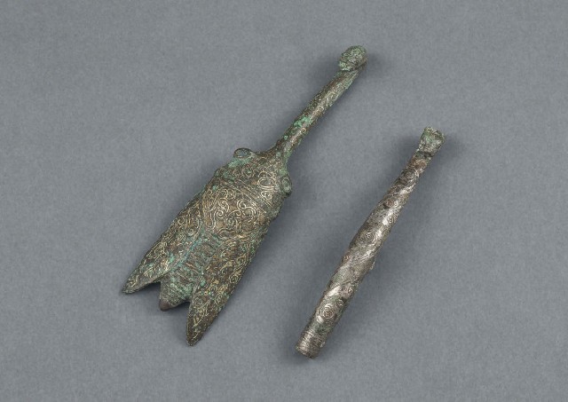 青銅金象嵌蝉文帯鉤 他[2点セット]