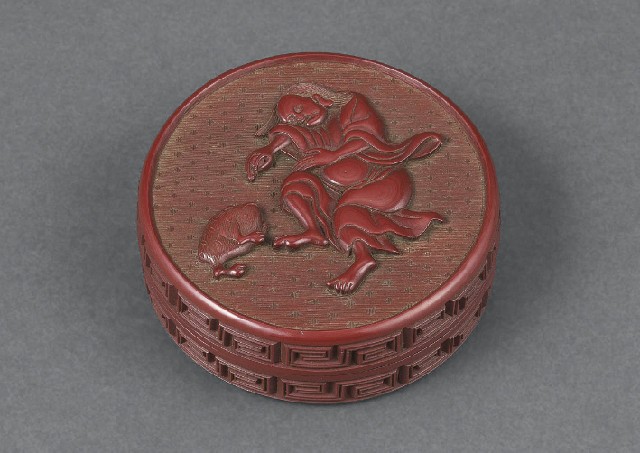 【Lot1048】 堆朱蝦蟇仙人文香合