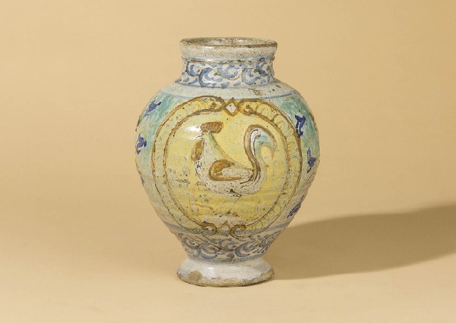 【Lot1073】 マジョリカ色絵鶏花文壷