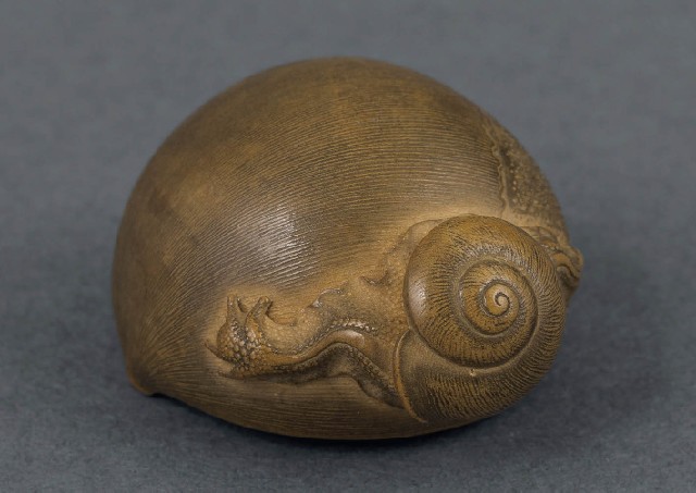 【Lot0123】 富春銘木彫栗蝸牛根付