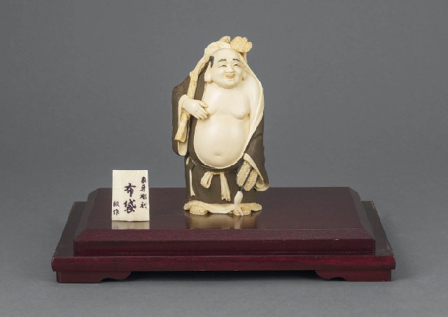 H19.2×W27.9×22.9(台座含む)cm 作品は台座に固定されている 立札、ガラスケース付