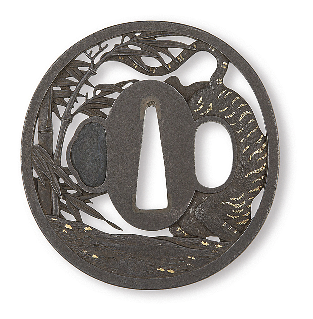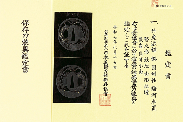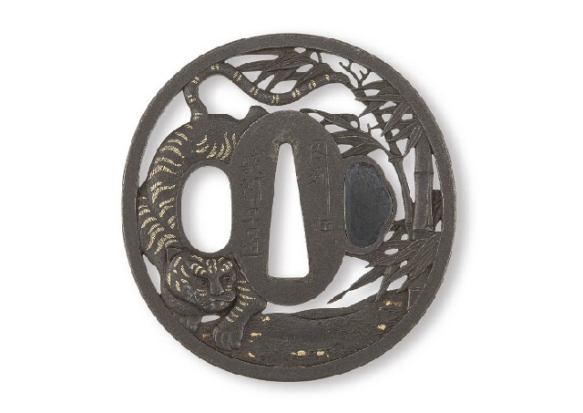 【Lot0020】 竹虎透鐔 銘 因州住駿河卓置