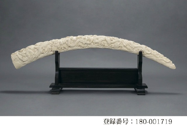 L143cm 総重量約15.9kg(内部未確認) イタミ、直し 「国際希少野生動植物種登録票」有(180-001719) 木製台座付