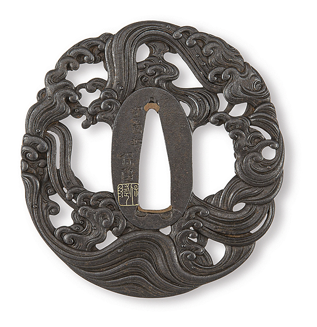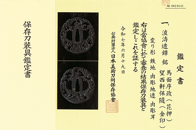 波濤透鐔 銘 馬面序政(花押)/望西軒保隨(金印)