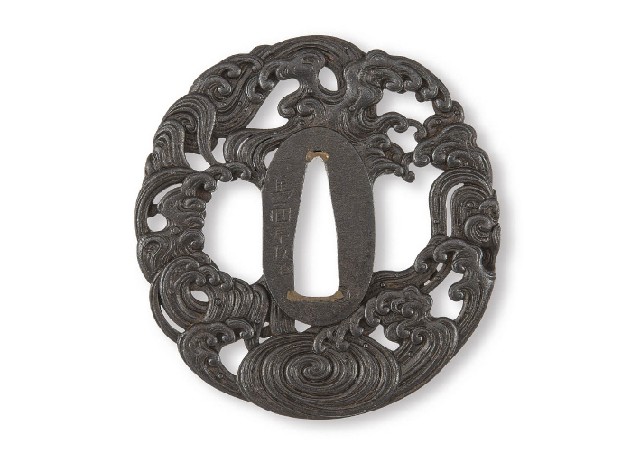 【Lot0021】 波濤透鐔 銘 馬面序政(花押)/望西軒保隨(金印)