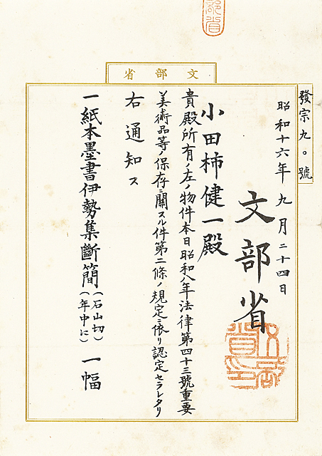 重要美術品 石山切(伊勢集)