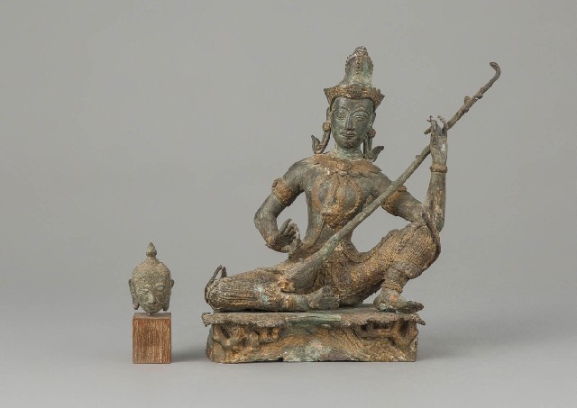 【Lot0360】 青銅仏頭・青銅ガンダルヴァ像 [2点セット]