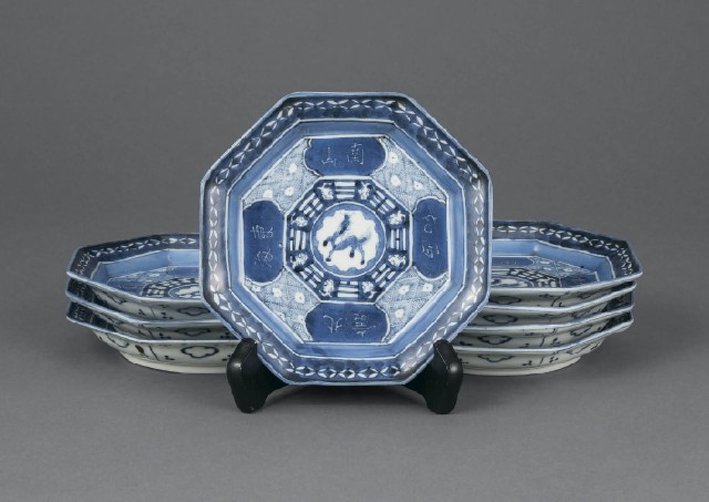 【Lot0478】 古伊万里染付麒麟文八角皿(8点)
