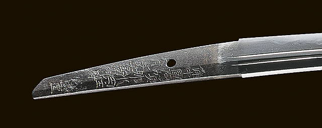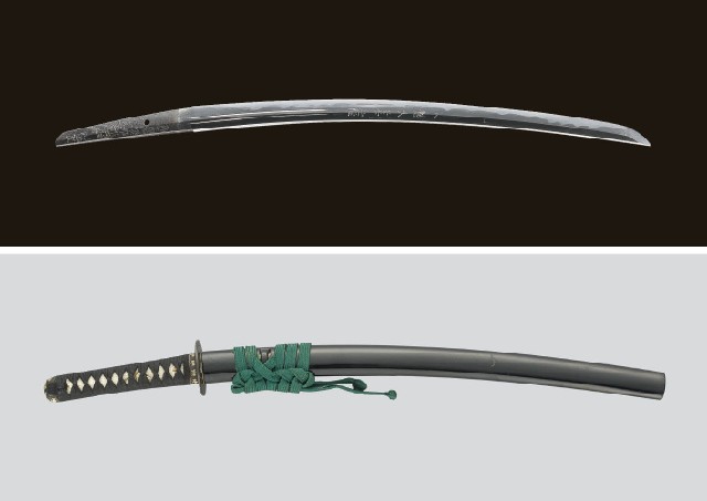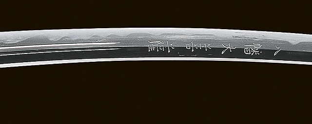 刀身/刃長50.8cm 反り1.9cm 元幅3.0cm 先幅1.8cm 銘「備中國阿賀郡水田住大月□右衛門尉國重/寛文拾弐年八月吉日」 銃砲刀剣類登録証 白鞘無 拵/全長約76cm 鐔に刻銘「山城国伏見住金家」 小柄欠