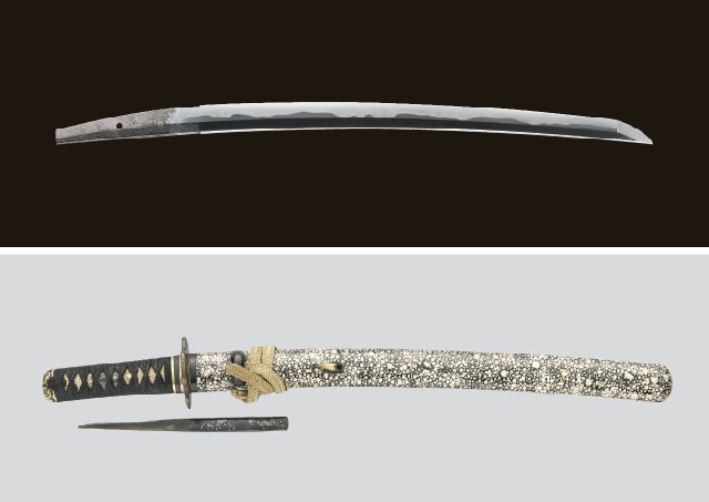 刀身/刃長44cm 反り0.9cm 元幅2.9cm 元幅2.0cm 無銘(切付銘□□□□) 日本美術刀剣保存協会保存刀剣鑑定書(令和7年) 銃砲刀剣類登録証 白鞘入 拵/全長約62cm 小柄に在銘