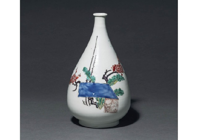 【Lot0532】 古九谷色絵五彩梅枝折紙文徳利