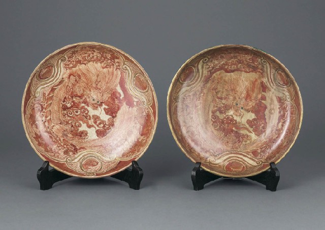 【Lot0636】 九谷赤絵金彩雲龍文鉢(2点)