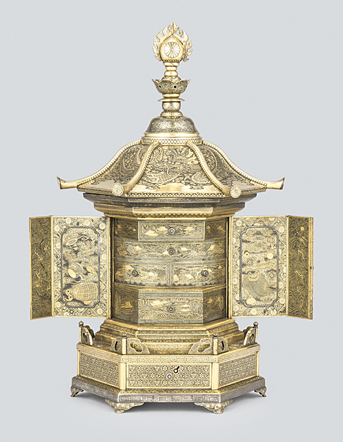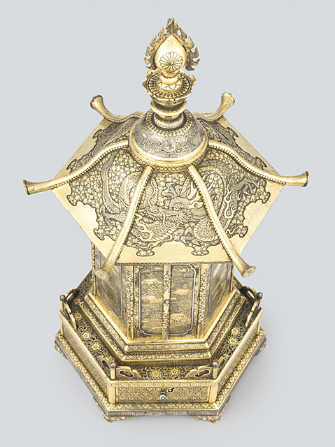 金象嵌菊紋龍唐草楼閣文舎利塔