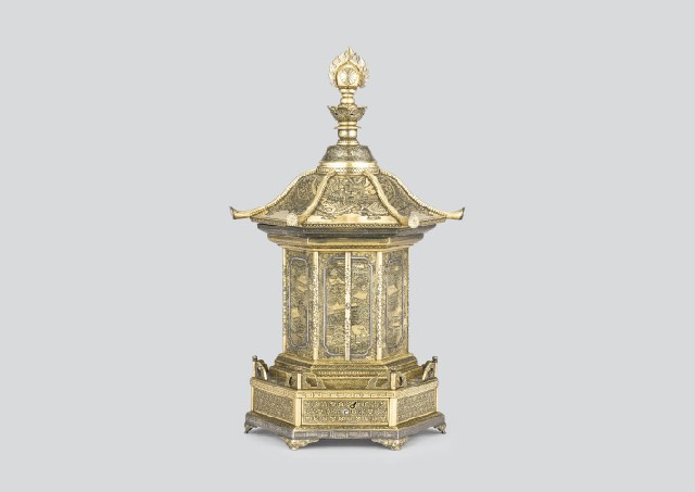 【Lot0690】 金象嵌菊紋龍唐草楼閣文舎利塔