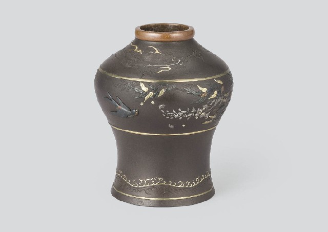【Lot0738】 鉄地象嵌龍藤燕文花瓶