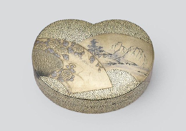 【Lot0797】 蒔絵扇面菊籬山水文香合