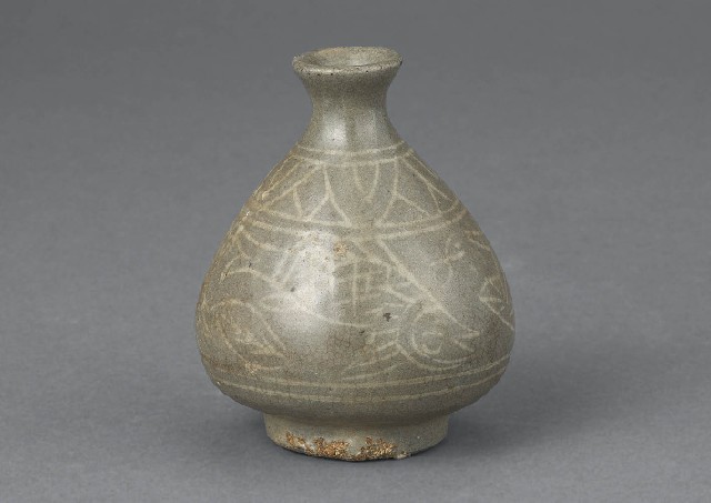 【Lot0866】 高麗青磁象嵌魚文小瓶