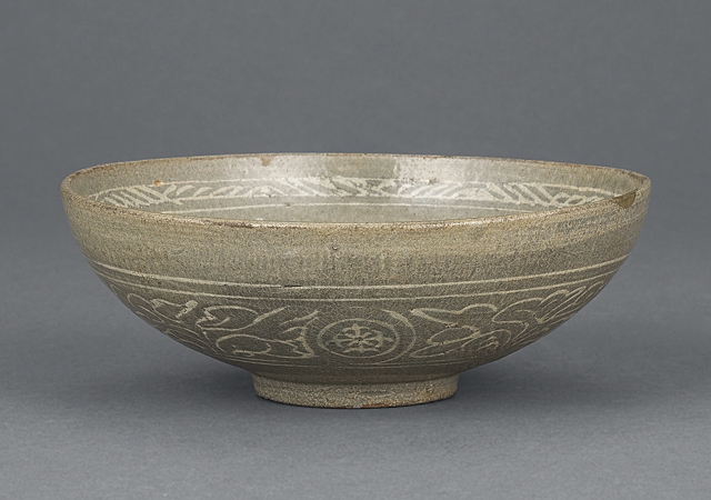 【Lot0871】 高麗青磁象嵌雲鶴文鉢