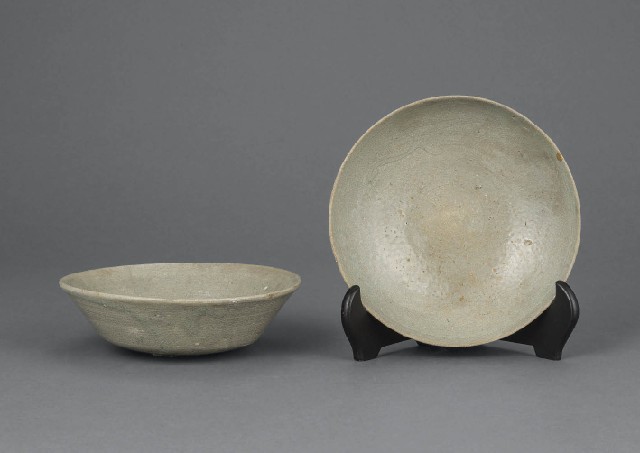高麗青磁平鉢/H5.2×W17.1cm ニュウ、直し 高麗青磁陰刻鳥文平鉢/H5.1×W17.5cm 直し