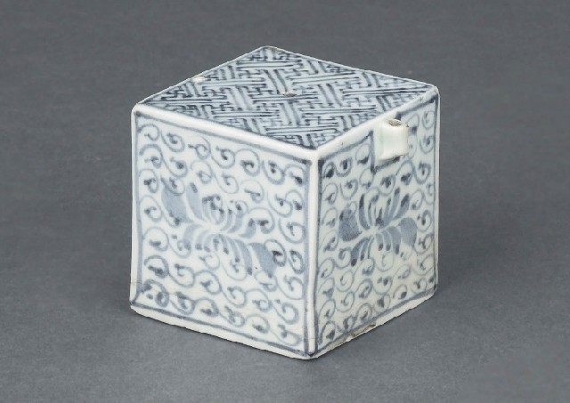 【Lot0892】 李朝染付牡丹唐草文四方水滴