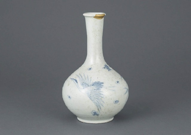 【Lot0900】 李朝染付竹雲鶴文瓶