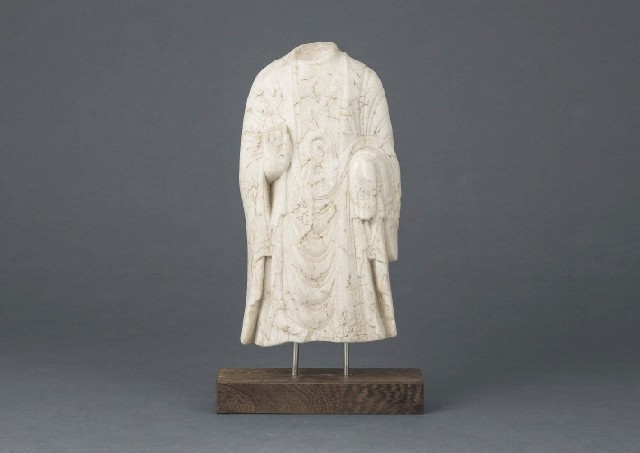 H32.3×W18.2×7.1(台座含む)cm 作品は台座に固定されている 木製台座付